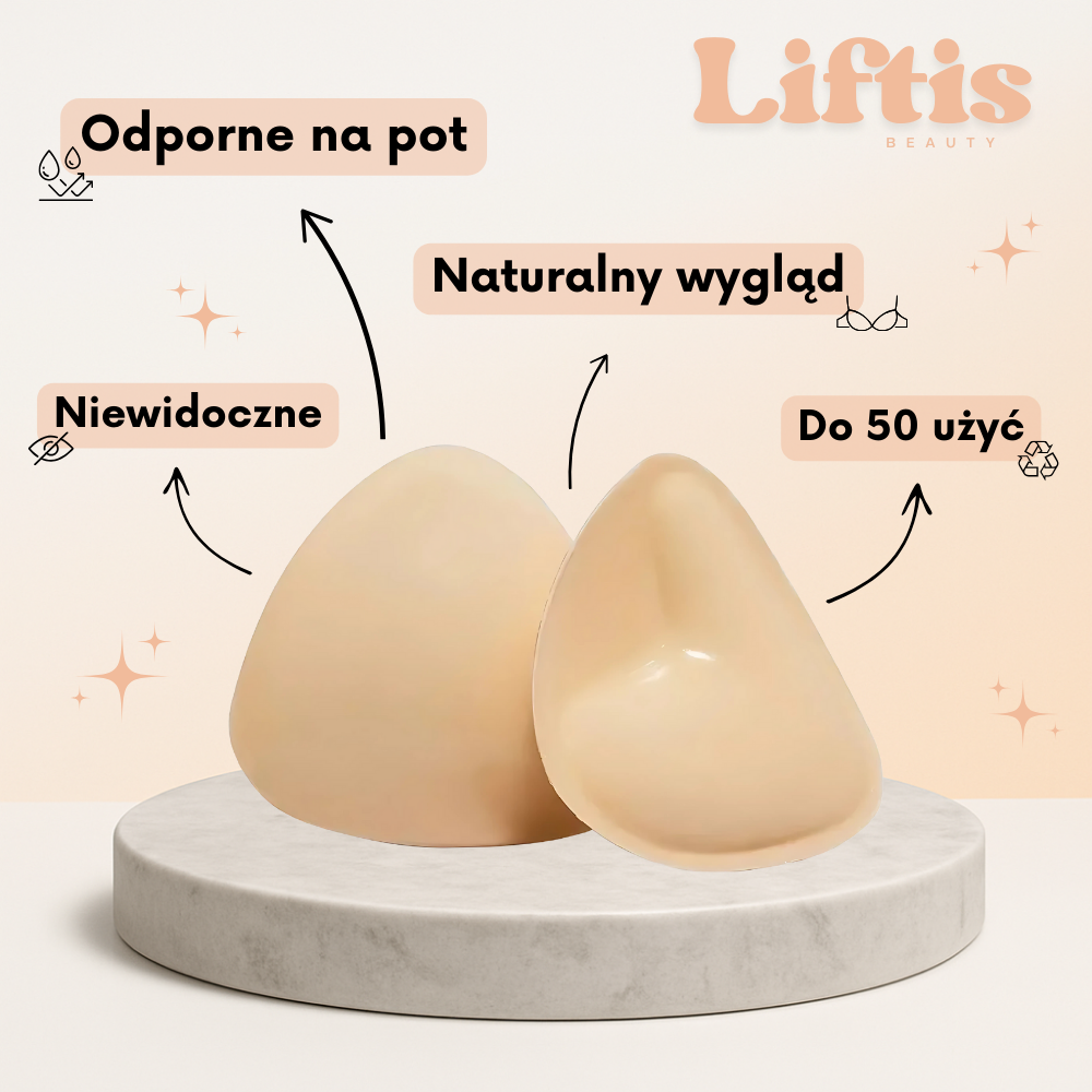 LiftisCup to niewidoczne wkładki, które idealnie przylegają do skóry i zapewniają natychmiastowy efekt bez pocenia się czy przesuwania. Stworzone z myślą o Twojej wygodzie i stylu – noś je, ile chcesz, bez kompromisów.