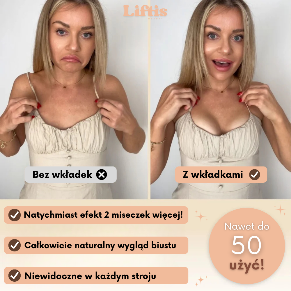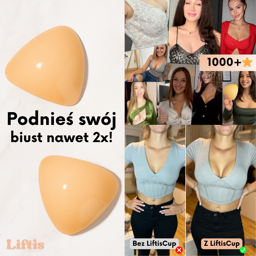 LiftisCup to dyskretne wkładki samoprzylepne, które unoszą i modelują biust w kilka sekund. Bez stanika, bez ucisku – tylko komfort, naturalny efekt i swoboda noszenia ulubionych ubrań. Idealne na co dzień i na specjalne okazje.